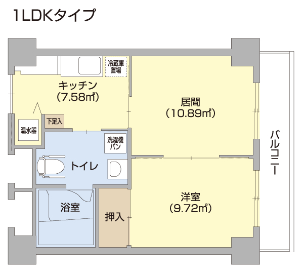 | 戸数 | 33戸 1DKタイプ12戸(28.70平方メートル) 1LDKタイプ21戸(38.06平方メートル) |
