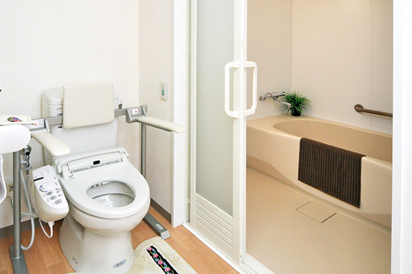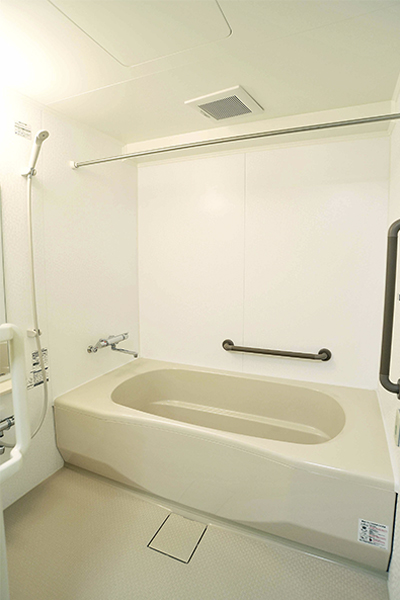 - お風呂とトイレのスペースを十分にとり、車椅子の方でも安心して一人暮らしができます。